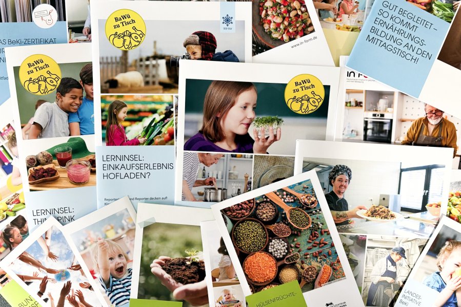 - Hilfreiche Informationsmaterialien zu Kitaverpflegung und Schulverpflegung wie Plakate, Broschüren