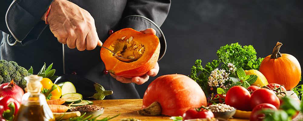 Für die Umsetzung einer Saisonalen Woche in der Mensa gibt es zahlreiche Möglichkeiten, denn aus saisonalen Lebensmitteln können vielfältige Gerichte gezaubert werden. Der Speiseplan für eine Kürbiswoche könnte z. B. so aussehen: