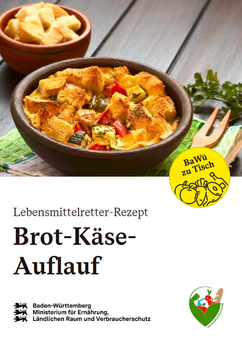 Die Lebensmittelretterrezepte sind Rezepte zur Verwertung von Lebensmittelresten. Beim Rezept für Brot-Käse-Auflauf