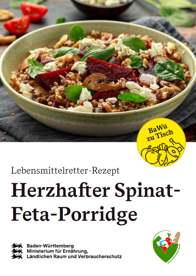 Rezept für herzhaften Spinat-Feta-Porridge ist für 2 Personen konzipiert und richtet sich an Verbraucherinnen und