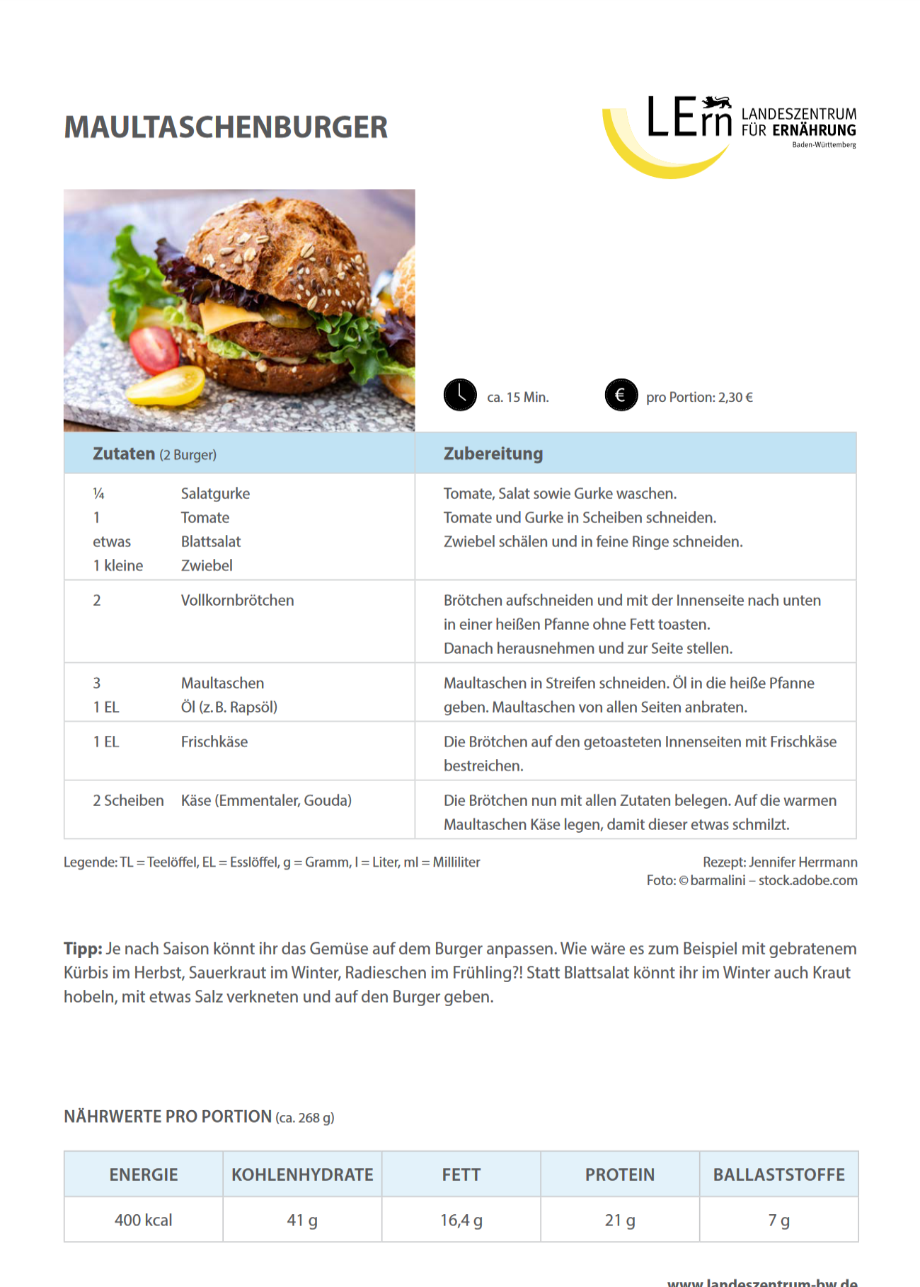 entwickelt und ist an die Interessen dieser Zielgruppe angepasst. Hier finden Sie weitere leckere Rezepte von #easyfoodbw.