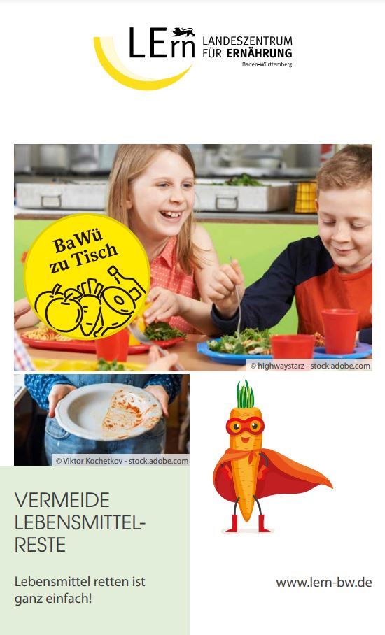 Der Tischaufsteller ist für die Nutzung in Schulen im Speiseraum oder Mensa geeignet und gibt Kindern und Jugendlichen Tipps zur Vermeidung von Lebensmittelresten.