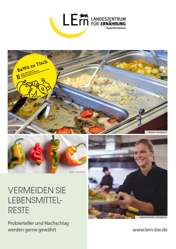 Tischgäste werden durch das Plakat sensibilisiert und darauf hingewiesen, dass auch sie aktiv zu weniger Lebensmittelabfällen in der Gemeinschaftsverpflegung beitragen können. Ergänzend zum Plakat gibt es den Tischaufsteller: "Vermeiden Sie Lebensmittelreste", der ebenfalls im Speiseraum eingesetzt werden kann.