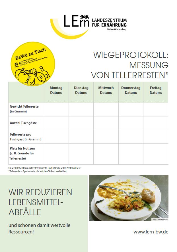 Mit dem Wiegeprotokoll "Messung von Tellerresten" können Einrichtungen, die Tellerreste erfassen, Transparenz schaffen und Tellerreste in der Gemeinschaftsverpflegung sichtbar machen. Denn die Reduzierung von Lebensmittelresten und der damit verbundene Schutz wertvoller Ressourcen gelingt einfacher, wenn Tischgäste von Anfang an ins Boot geholt werden.