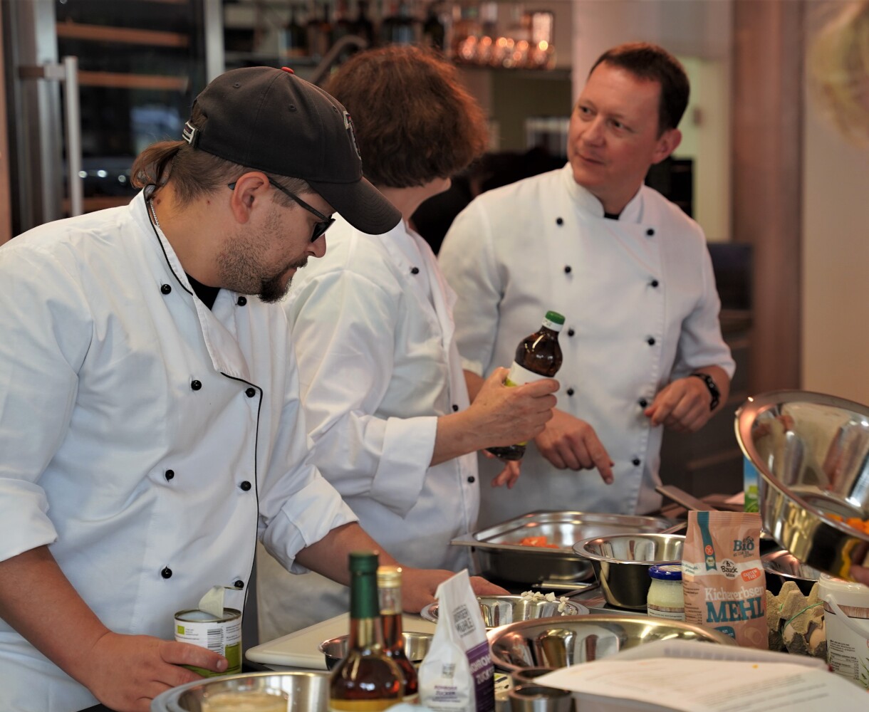 Es bleibt nicht nur bei der Theorie: Gemeinsam mit dem Bio-Koch Karsten Bessai werden kreative Rezepte entwickelt, gekocht und verkostet.