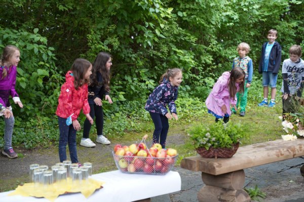 Dass Äpfel nach dem Anschneiden braun werden, haben die Kinder schon oft bei Apfelschnitzen oder einem Obstsalat bemerkt. Im Forscherinnen- und Forscherlabor stellten sie nun die Frage: „Wie kann ich verhindern, dass Äpfel braun werden?“