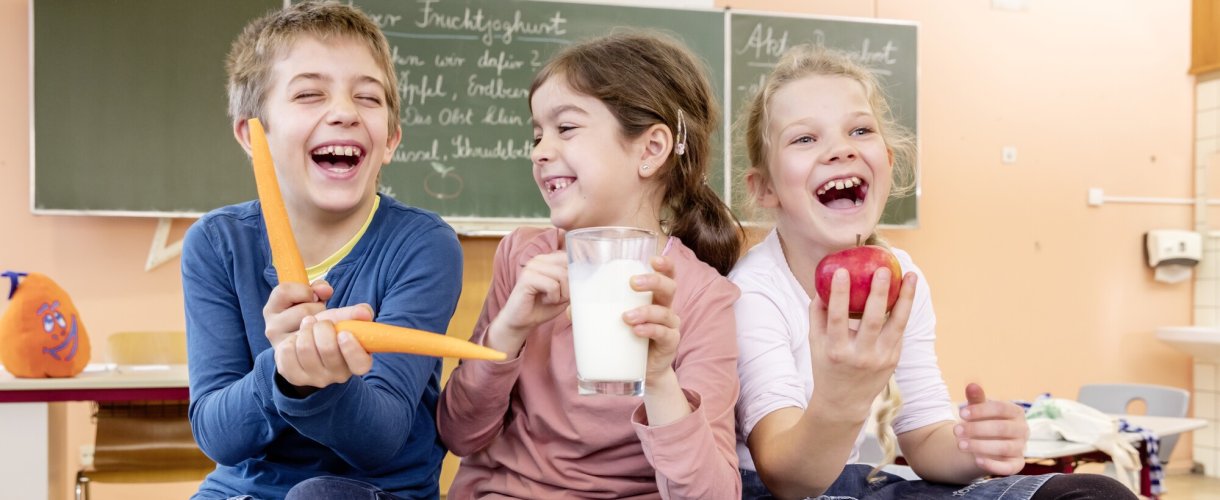 Knackiges Gemüse, buntes Obst und frische Milch schmecken richtig lecker und machen fit für den Kita- und Schulalltag. Als Teil einer ausgewogenen Ernährung tragen sie zu einer gesunden Entwicklung der Kinder jetzt und in Zukunft bei.