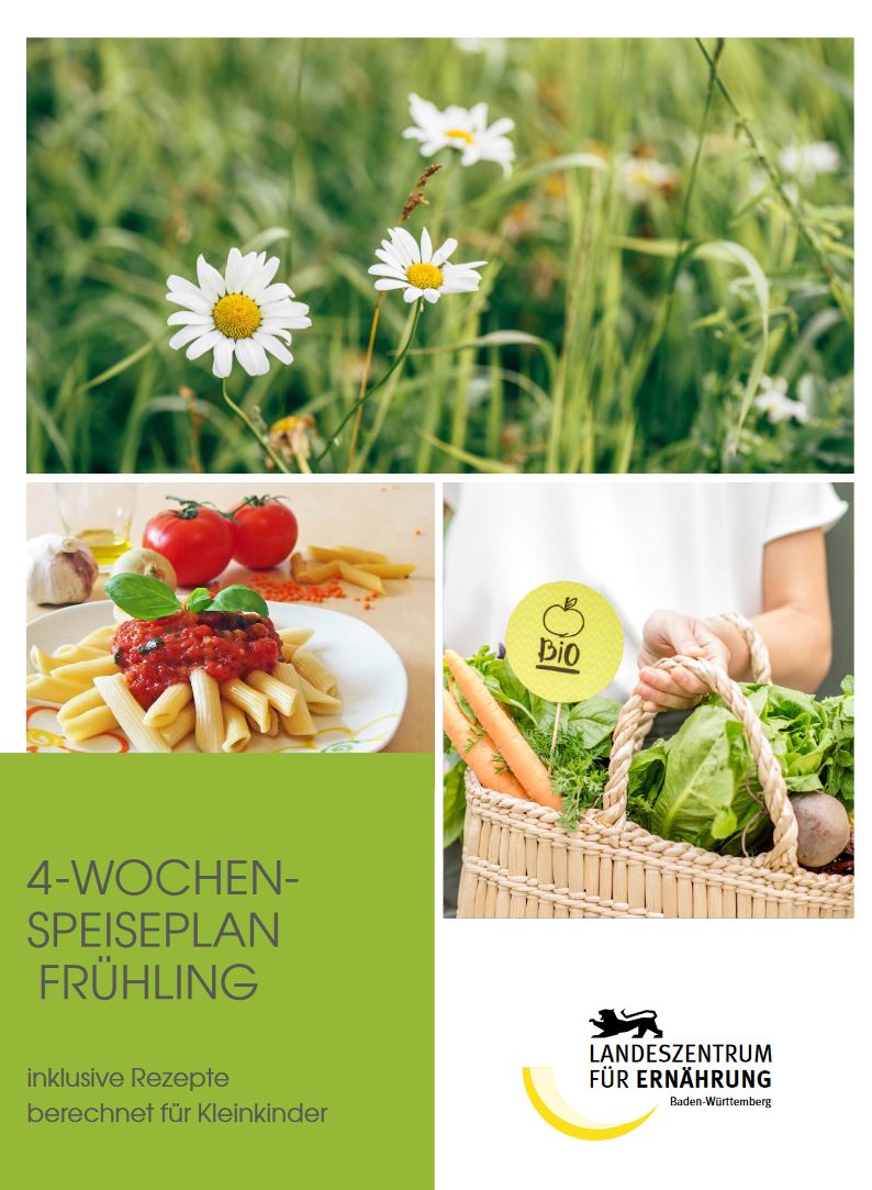 In der Rezeptsammlung ist ein farbenfroher und nährstoffreicher 4-Wochen-Speiseplan für Kleinkinder von 1 bis unter 4 Jahren enthalten, der den Frühling auf den Teller bringt! Der saisonale Speiseplan orientiert sich an den Qualitätsstandards für Kitaverpflegung und ist dadurch speziell auf die Bedürfnisse der Kleinsten abgestimmt.