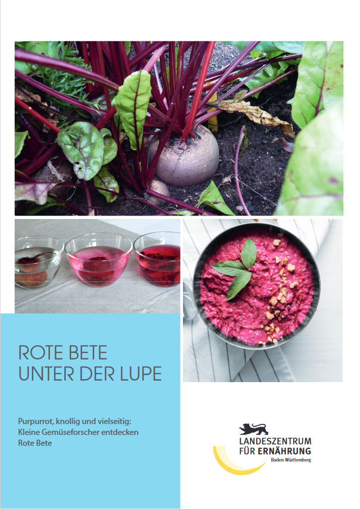 Die Broschüre für pädagogische Fachkräfte in Kita und Grundschule enthält Anleitungen um gemeinsam mit Kindern die Rote Bete von all ihren Seiten zu entdecken.