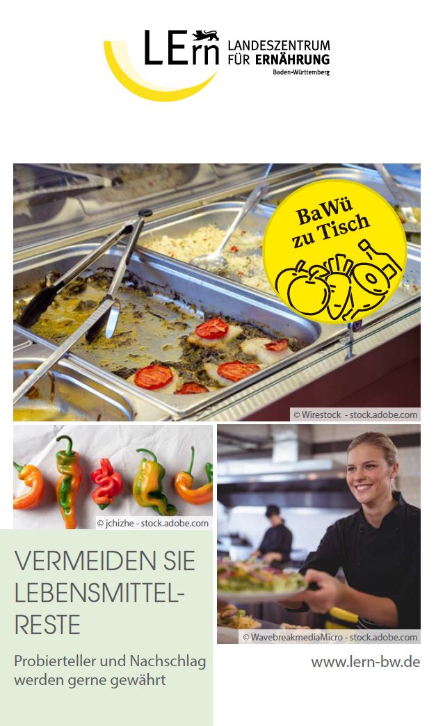 Tischgäste werden durch den Aufsteller sensibilisiert und darauf hingewiesen, dass auch sie aktiv zu weniger Lebensmittelabfällen in der Gemeinschaftsverpflegung beitragen können. Der QR-Code auf der Rückseite führt zur Infoseite: Vermeiden Sie Lebensmittelreste - Für den Erhalt wertvoller Ressourcen, auf der noch einmal tiefergehende Informationen zu finden sind. Ergänzend zum Tischaufsteller gibt es das Plakat: Vermeiden Sie Lebensmittelreste.