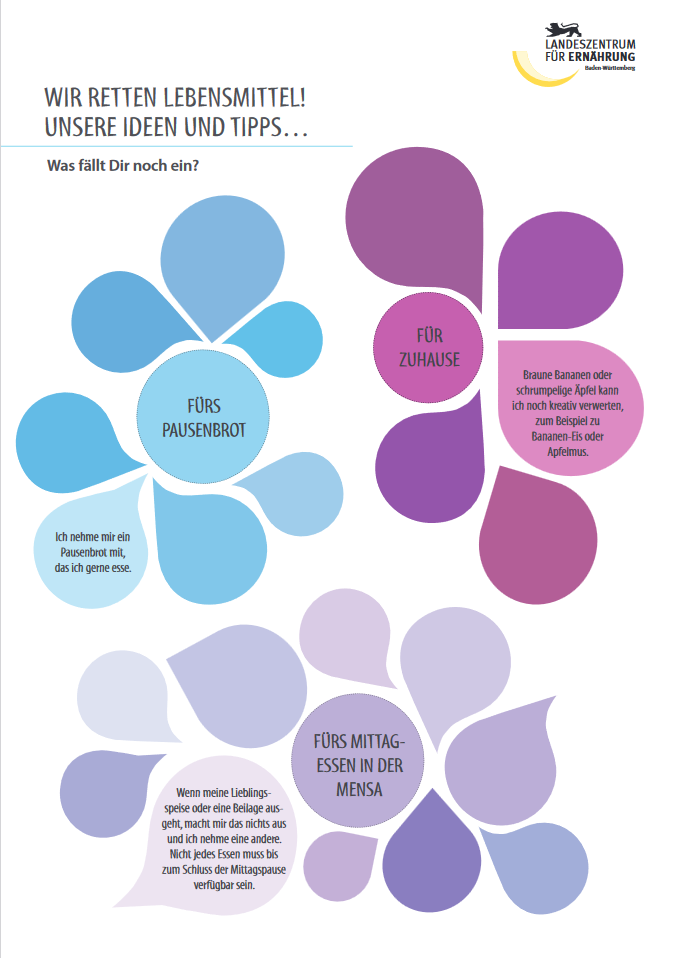 Mithilfe dieser Vorlage können Schülerinnen und Schüler Ideen sammeln, wie sie Lebensmittelabfälle Zuhause oder in der (Mittags-)Pause vermeiden können.